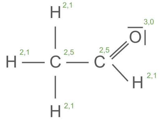 Bestimme die Oxidationszahlen aller Atome im Ethanalmolekül.