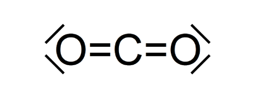 In einer vollständigen Strukturformel steht das Symbol C für einen Atomrumpf. Ein Atomrumpf umfasst das gesamte Atom mit Ausnahme der Außenelektronen. Diese sind hier durch Striche symbolisiert. Der Kohlenstoff teil sich im Kohlenstoffdioxidmolekül vier Elektronenpaare mit den verbundenen Sauerstoffatomen.