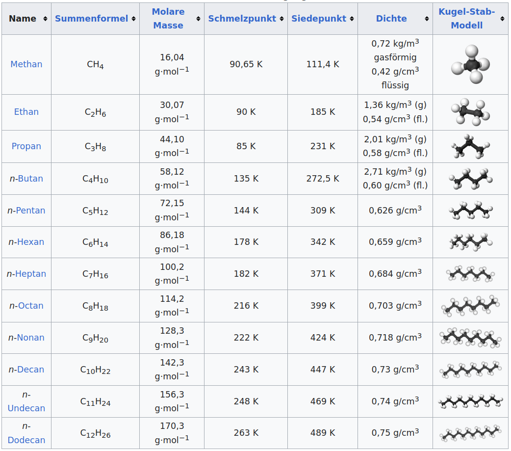 Alkane sind Kohlenwasserstoffe, also Verbindungen, die ausschließlich aus Kohlenstoff- und Wasserstoffatomen bestehen.